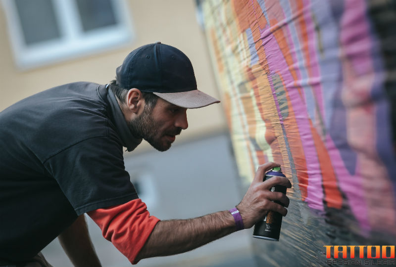 Tyhle barvy ke světu tetování prostě patří. Takže v sobotu odpoledne se šedá ulice změní v barevný ohňostroj a vy můžete být u toho, jak vznikají neuvěřitelné obrazy na zdech. A kdo bude tím týpkem se sprejem v ruce? Kdo jiný, než ZERO 😎